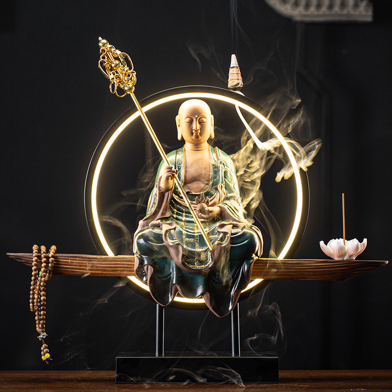 Thác khói trầm hương Địa Tạng Vương Bồ Tát màu đỏ