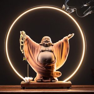 Thác khói trầm hương mẫu tượng di lặc kết hợp đèn led